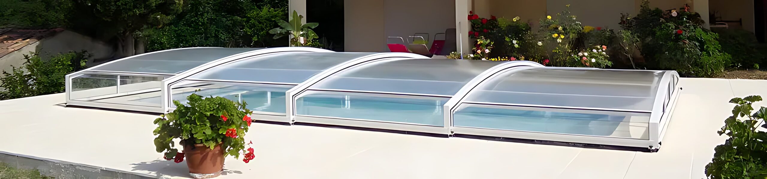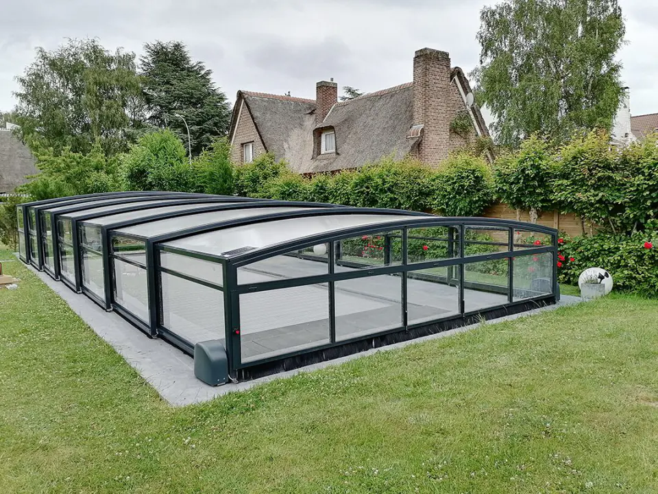 Abris de piscine plat, bas, medium, haut, hybride et grands modèles.