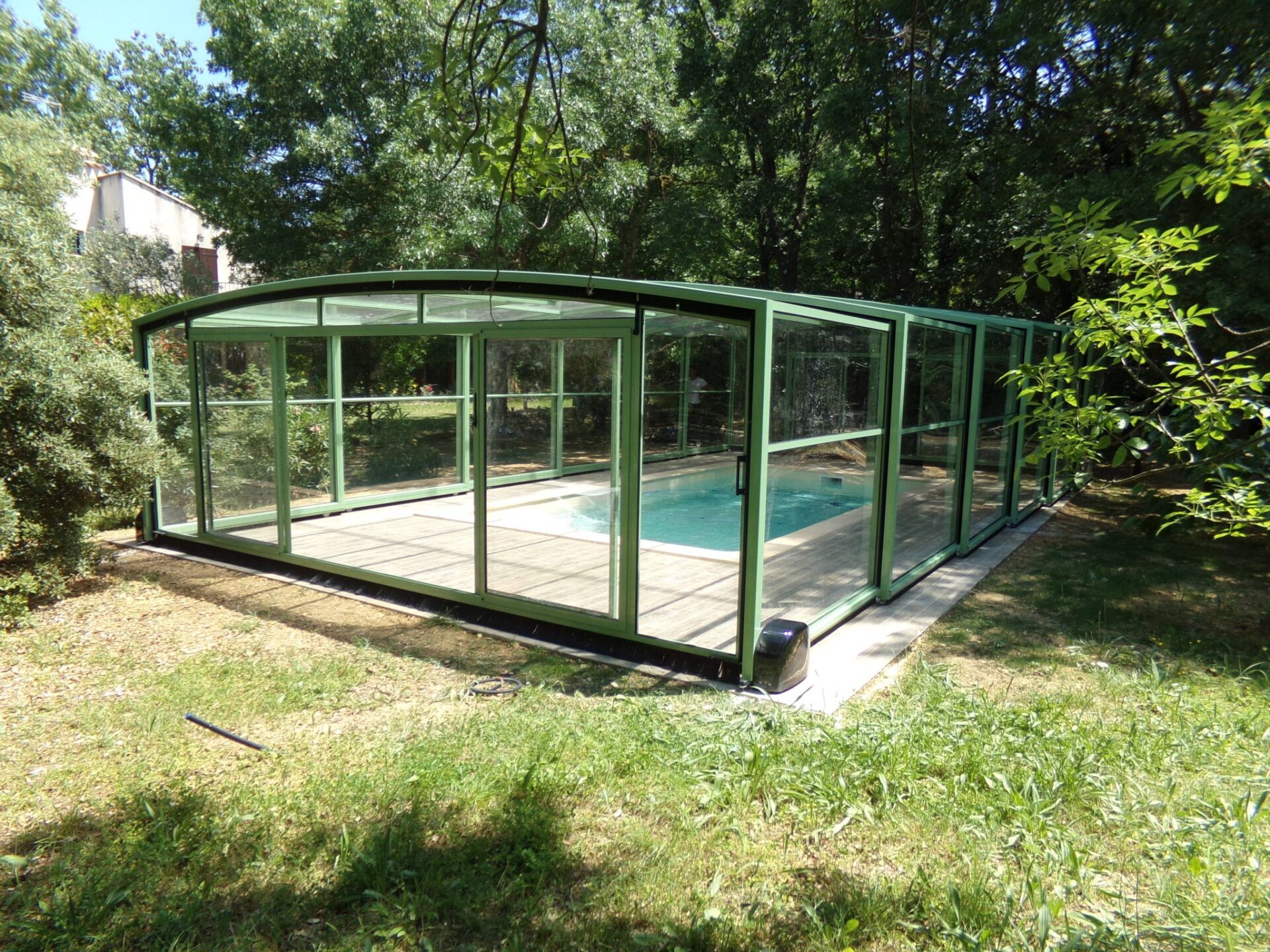 L'installation de l'abri de piscine a eu lieu en septembre 2017 en Lozère dans les Gorges du Tarn. Nous avons été très bien conseillés pour le choix et l'installation de cinq éléments dans un souci d'esthétique.Nous avons apprécié le professionnalisme de l'installateur ainsi que l'engagement et le respect des délais par Madame Lemasson. A recommander.